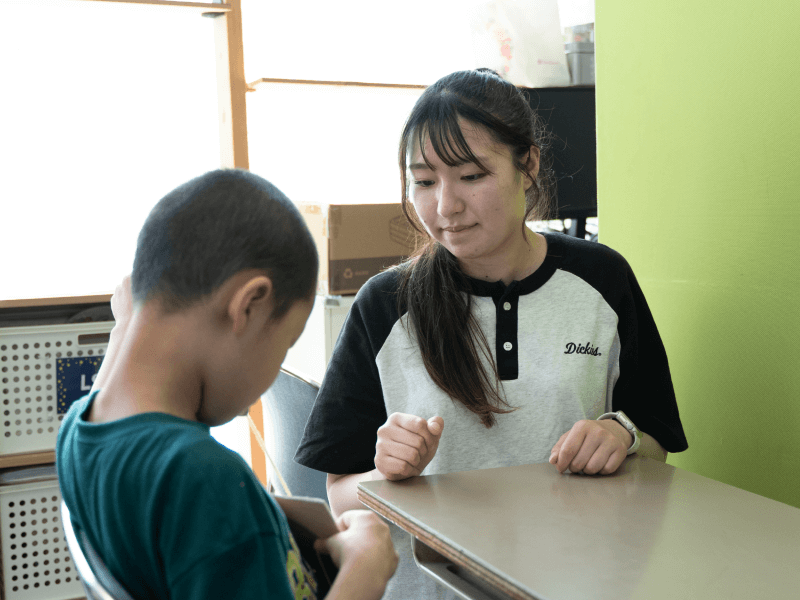 大学で障がいについて勉強することがあって、そこで強い関心を抱くようになりました。あとはなんとなく子ども関係の仕事につきたいなって想いもありました。そんな想いを抱えながら就職活動を始めたんですが、その時に放課後等デイサービスという存在を知りました。放デイというのは、支援が必要な障がいを抱えた子どもに対して、学校や家庭とは異なる場所や時間、人や体験などを通して子どもたちの状況に応じた発達支援をおこなうことでより良い育成を図るものですが、とても興味を持ちましたね。